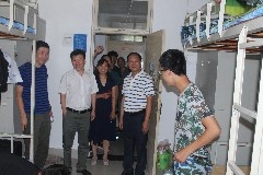 2017级新生宿舍则不时传来一阵阵掌声与欢笑声。随着新生入住宿舍,9月19日,学院领导班子成员、全体学工人员及新生班主任深入新生宿舍看望、慰问了大一新生,学院领导们每到一处都与新生亲切交流,让他们感受到来自学校、学院的关心和家一般的温暖。
