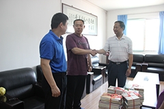 院长杨磊、学校图书馆副馆长东野广升接受了赠书,转达了学校及学院对林老师的关心慰问。