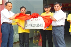 青年就业创业见习基地揭牌并合影留念。最后,在李谦老师的祝福词和大家的热烈掌声中,此次社会实践活动揭牌仪式顺利结束。