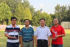 杨磊院长的陪同下,亲切接见了参加第十三届全国大学生田径锦标赛的教练员和运动员,并与他们合影留念。