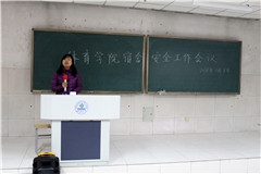 会议伊始,李涛老师对每周二例行的检查进行总结,分析了卫生与安全的问题,批评了卫生不达标的宿舍,同时指出了床帘、电源、电瓶车电池充电、吸烟等影响个人安全的现象,要求宿舍安全员要负起责任并排查安全隐患,若有安全隐患需及时反馈。为接下来的宿舍文明月活动做准备。接着,李谦老师提出五个意识:规则意识、责任意识、主人翁意识、团队意识,以此规范学生的行为。学院党委副书记、副院长卢琦,指出学校和学院对宿舍安全重视性极高,宿舍是窗口,通过窗口可以加深其他人对我院印象,并宣传色情视频