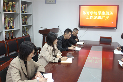 学生组织工作述职汇报在实验楼会议室召开。学院党委副书记、副院长马杰,三大学生组织指导老师以及学生组织主席团全体成员参会,会议由学办主任李谦主持。