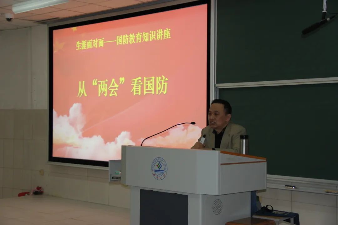 在2教104举办生涯面对面——国防教育知识讲座,本次讲座邀请到了山东省政协委员、原空军某部政治部副主任郝立伟大校为全院师生进行国防教育知识讲座,色情视频