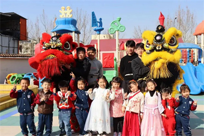 凯旋舞狮社团为小朋友带来传统舞龙舞狮表演。舞狮作为中华民族传统体育文化的重要组成部分,极富民族传统色彩和独特的表演艺术,其表演集观赏性、艺术性、竞技性为一体并具有强烈的吉祥、喜庆色彩和气氛渲染能力。活动中两只狮子威武霸气,动作刚劲,随着鼓点,时而跳跃,时而俯卧,时而与小朋友们亲切互动,孩子们被两只狮子深深吸引。表演后志愿者们仔细向小朋友们介绍中国传统舞狮文化,耐心回答小朋友们的问题。随后在志愿者的帮助下小朋友们也穿上舞龙服饰,在志愿者的指导下有模有样的表演起来。舞狮运动不仅能够在学校里弘扬中华民族的传媒文化与美德,还丰富校园文化和学生的课余生活。志愿者们在传播弘扬舞龙舞狮深厚的历史文化的同时,成员们的耐心以及服务能力也得到幼儿园老师们的一致好评。