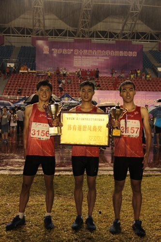 代表队分别领取男子乙组团体总分第二名、体育道德风尚奖和乙组团体总分第八名奖杯和奖牌