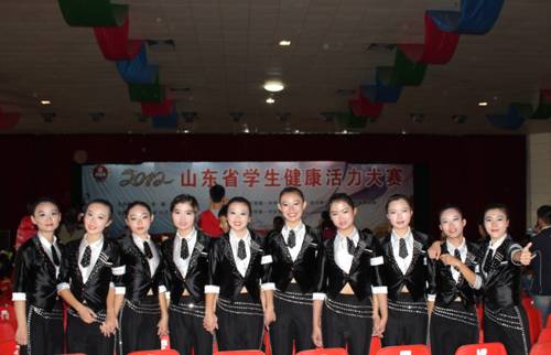 健美操代表队,在2012山东省学生健康活力大赛中,在所参加的三个项目的比赛中战胜众多强队获得健身健美操—集体徒手赛冠军、健身健美操—集体器械赛第三名、啦啦队—舞蹈啦啦操第六名的优异成绩。董柔和刘丹丹同学获得“体育道德风尚奖”,苏文革、杨鹏获得“优秀指导教师奖”。