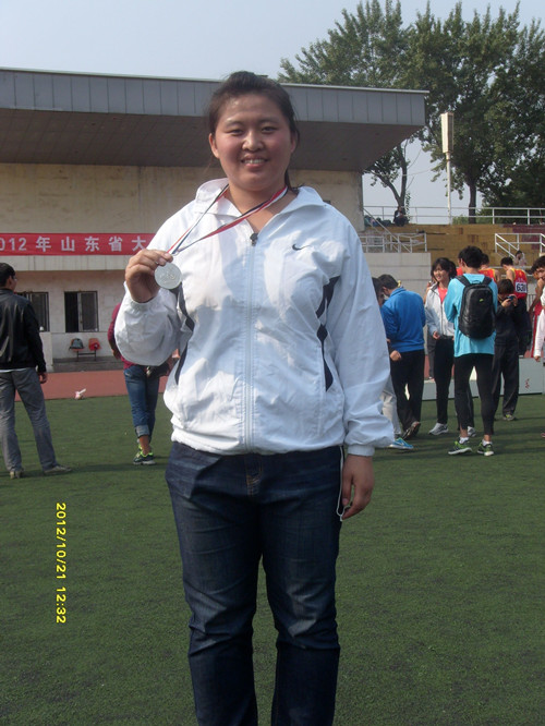 9.孙艳玲同学,获得女子甲组标枪铜牌,教练员单老师红军(外聘)